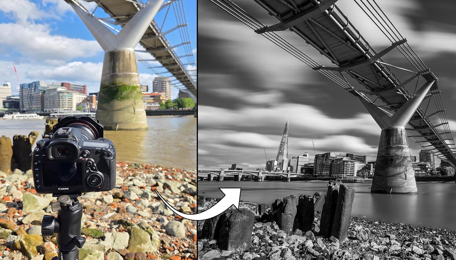 The first step is to remove colour distractions and focus purely on tonal values. Harsh sunlight often creates high contrast and strong shadows that work beautifully in monochrome.